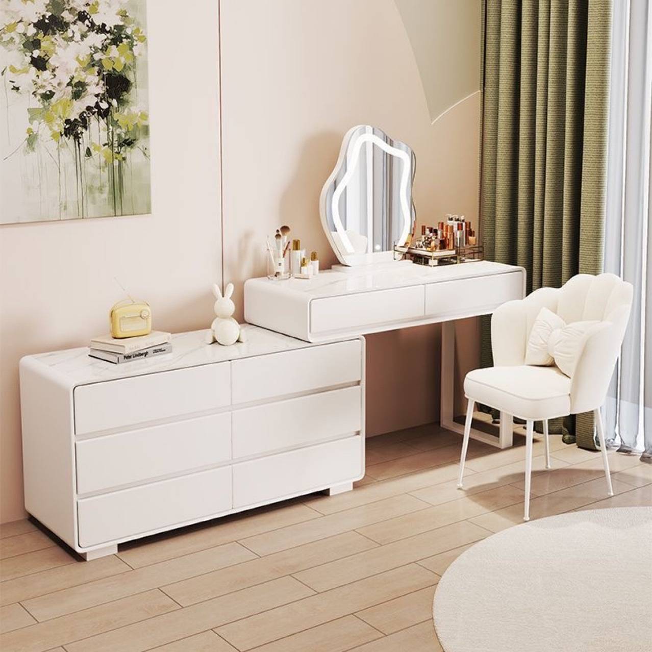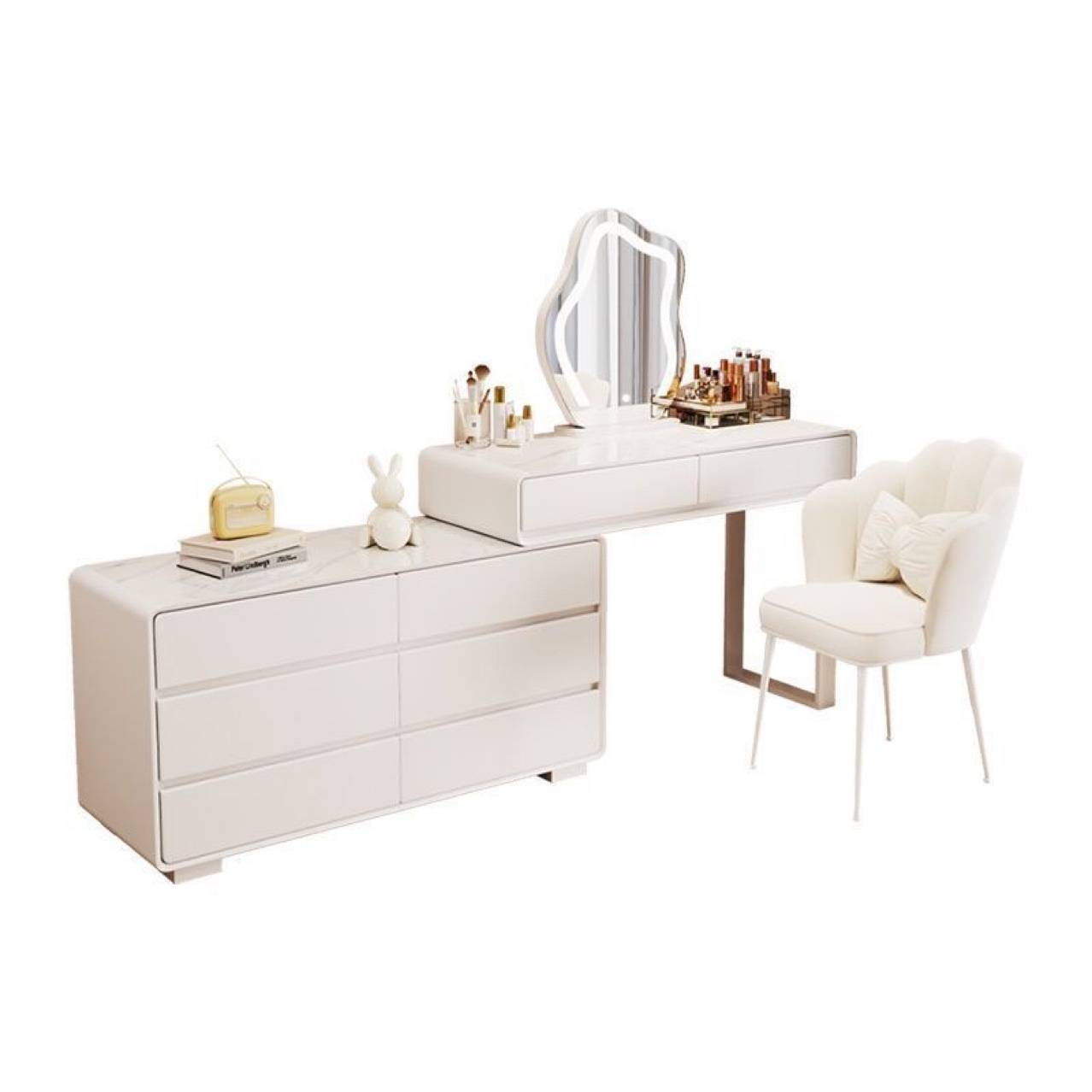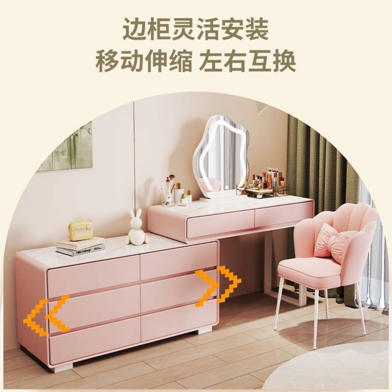 实木岩板化妆桌卧室梳妆台新款奶油风一体柜简约现代化妆台
