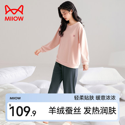 猫人羊绒蚕丝保暖睡衣套装