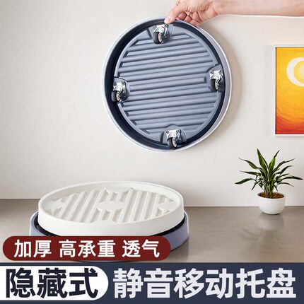 移动花盆托盘带轮透气垫底座滚轮万向轮塑料滑轮盆栽圆形接水底盘