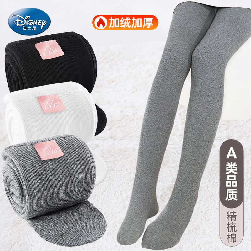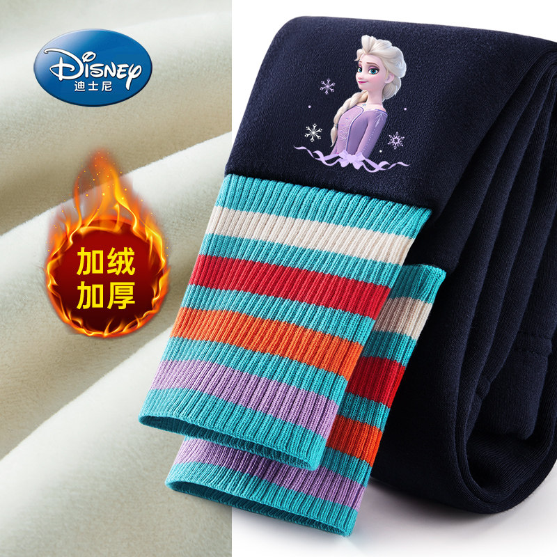 迪士尼童装女童打底裤特价清仓女孩秋冬款加绒加厚保暖紧身打底裤