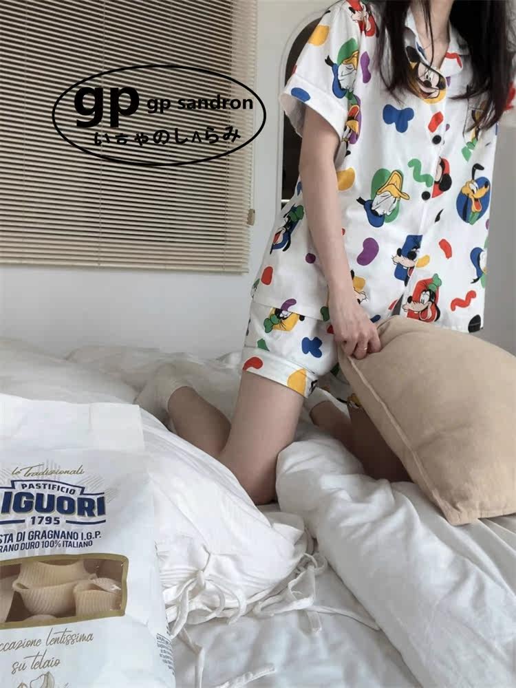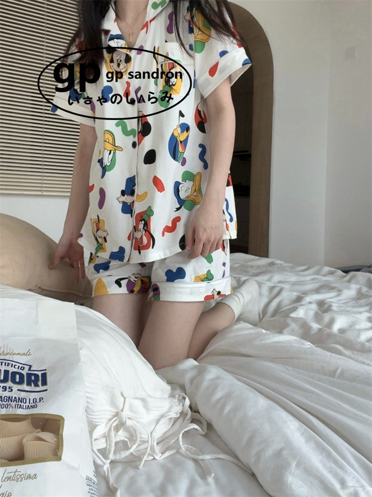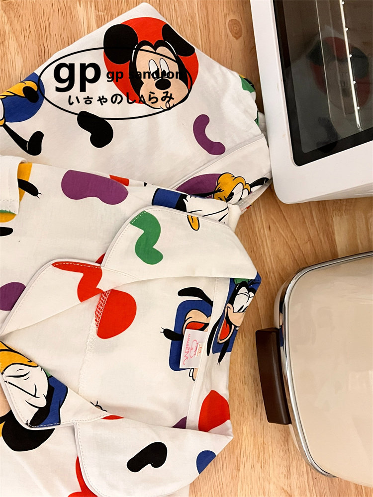 日本小众gp睡衣男女款米奇夏季情侣纯棉短袖短裤家居服开衫套装