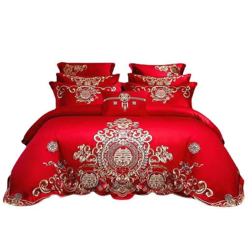 大红婚庆四件套绣花正品全棉纯棉刺绣 六 十件套被套结婚床上用品