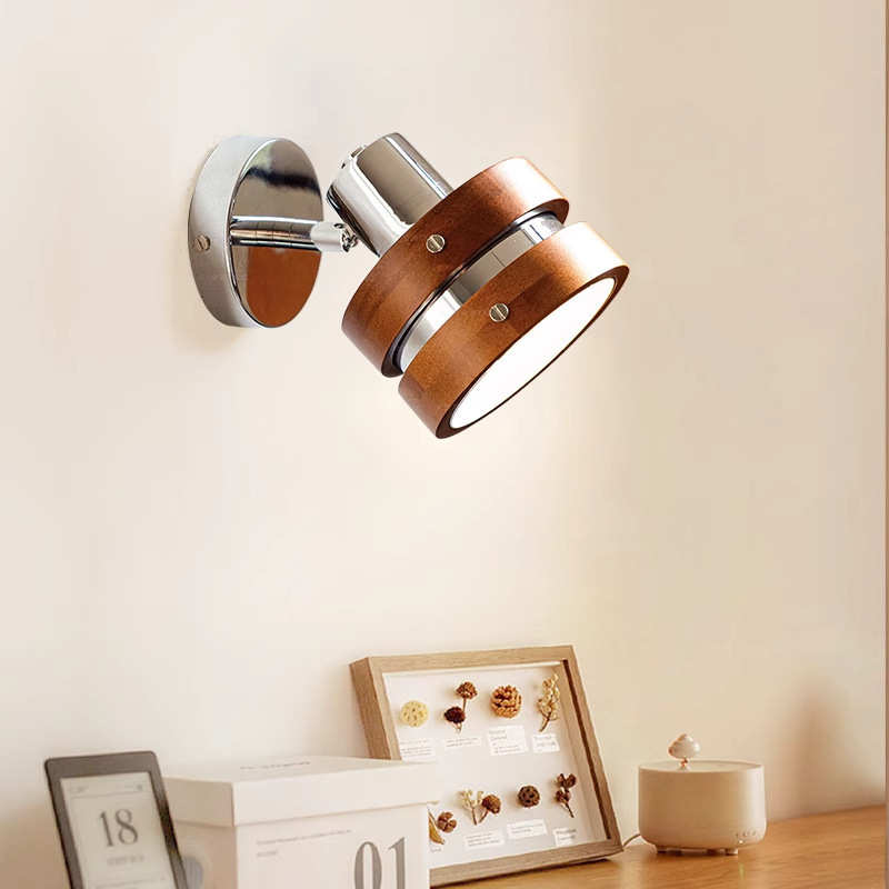 法式小壁灯复古胡桃木侘寂风卧室床头灯美式咖啡厅中古风实木壁灯