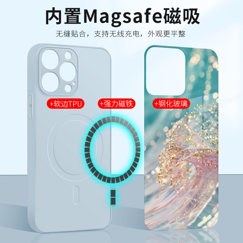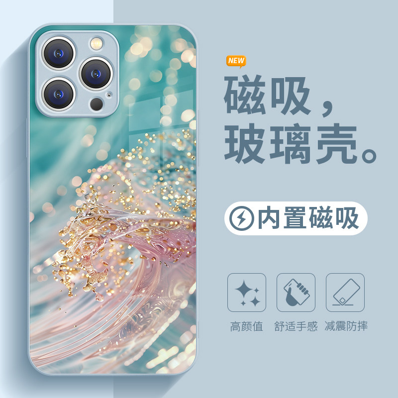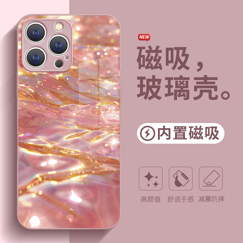 流水生金适用苹果15Promax手机壳新款16磁吸Magsafe无线15pro充电iPhone14plus高端奢华13鎏金12高级感17玻璃