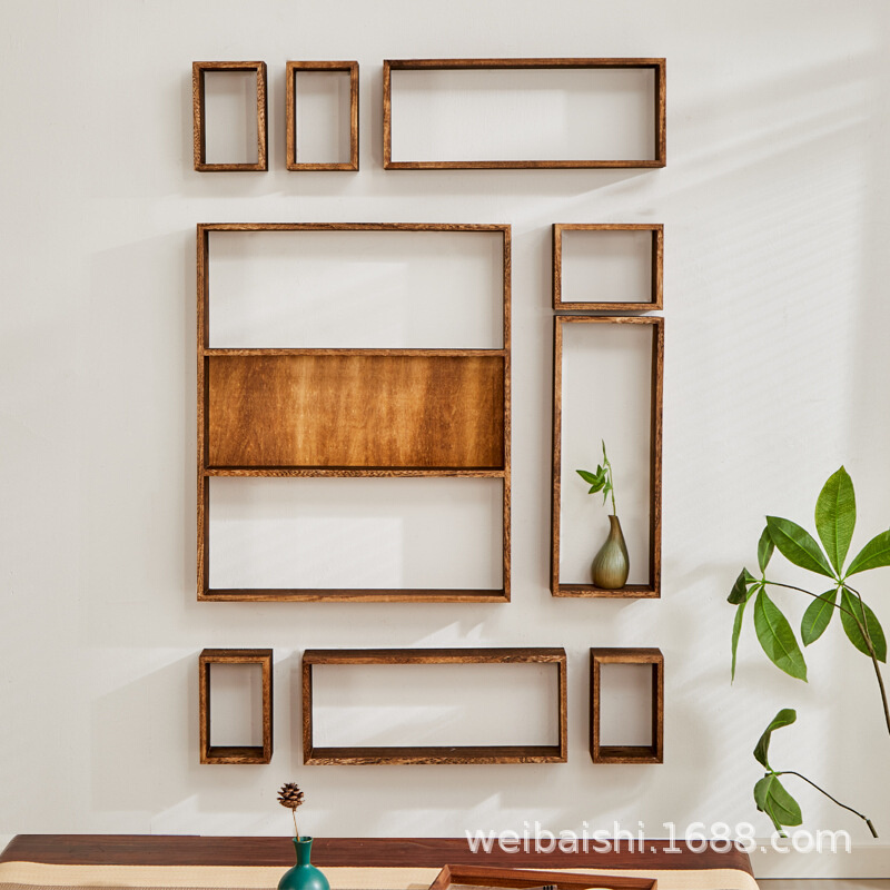 实木挂壁式书架自由组合格子柜吊柜置物架层架墙壁展示柜墙上批发