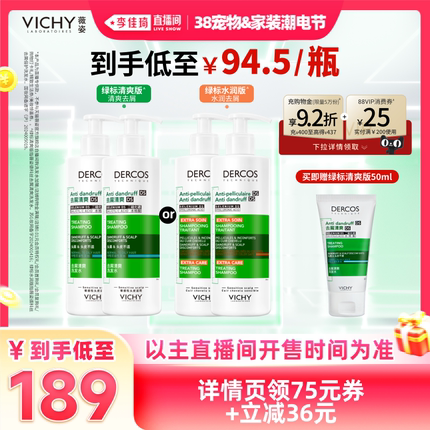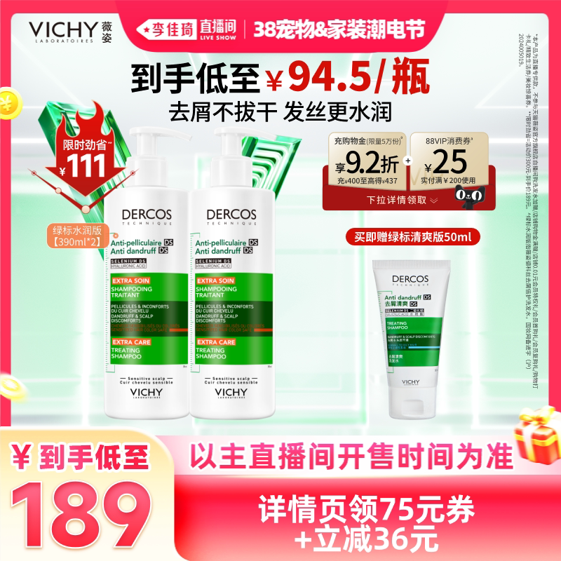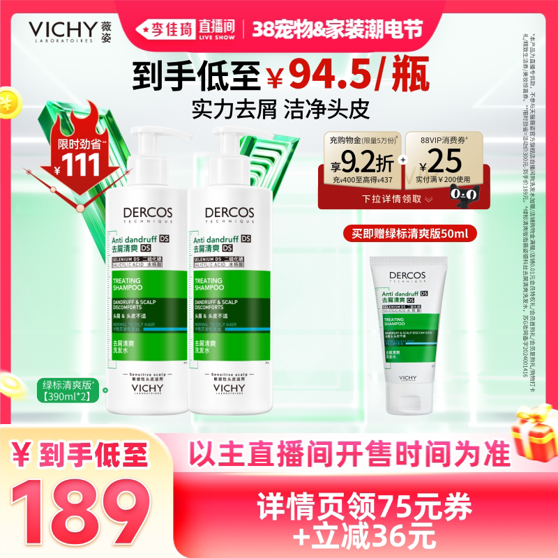 【李佳琦宠物&家装潮电节】薇姿绿标洗发水去屑清爽水润*