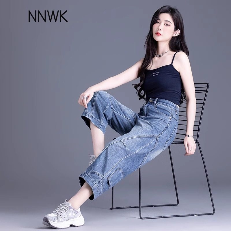 八分牛仔裤女2025新款小个子宽松直筒裤中裤夏季美式阔腿裤七分裤