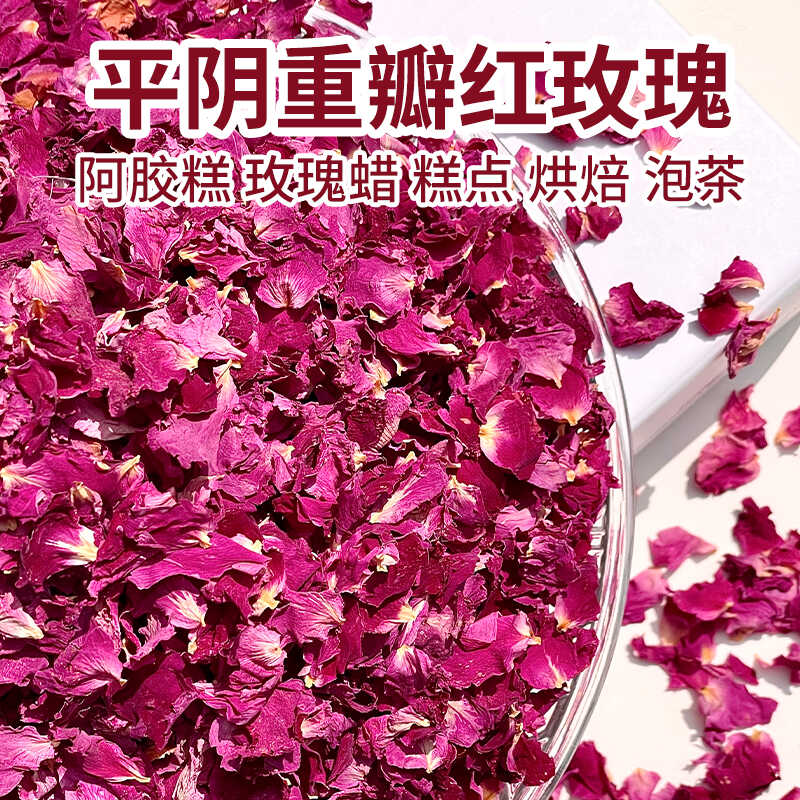 玫瑰花瓣50g蛋糕装饰烘焙品平阴重瓣红玫瑰花瓣干可食用玫瑰花茶