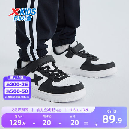 特步童鞋儿童小白鞋男童板鞋运动鞋女童白色鞋子学生跑步鞋休闲鞋