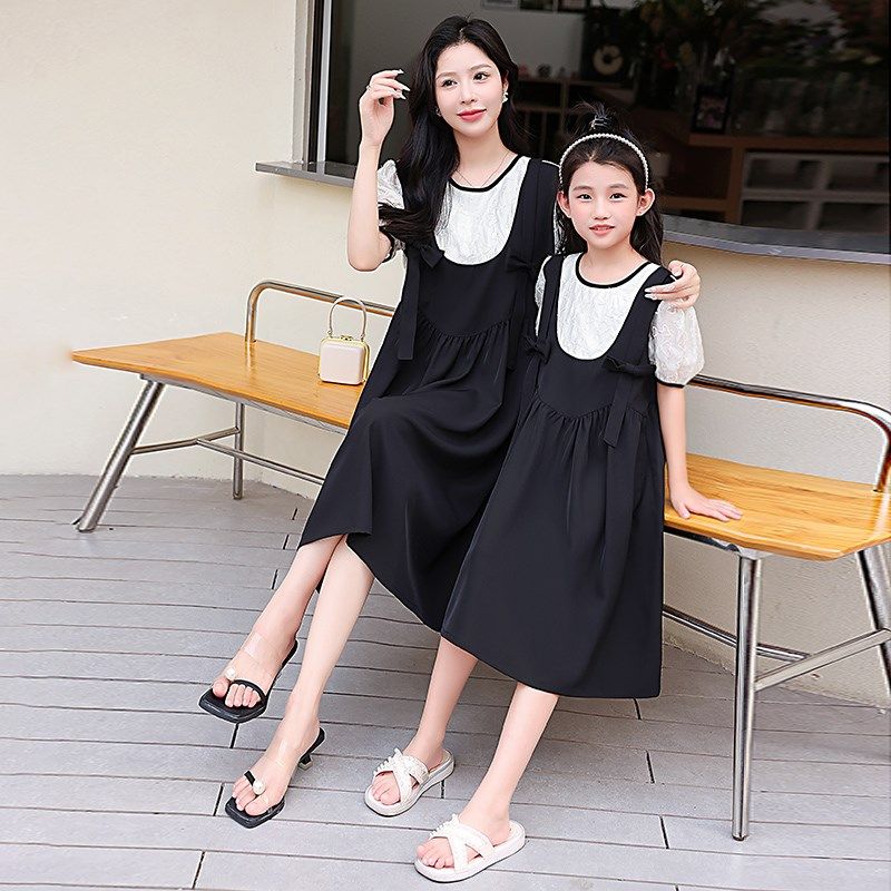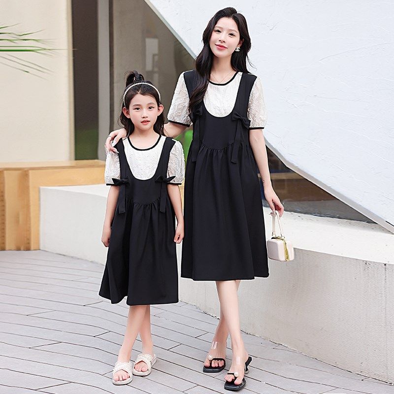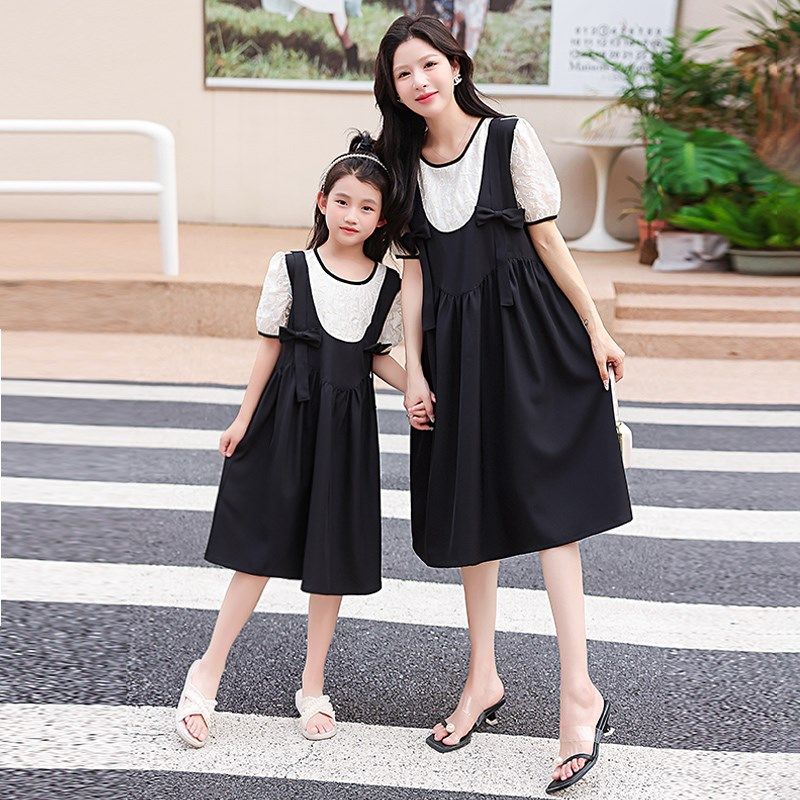 高端炸街亲子装连衣裙2024夏季新款潮韩版洋气时尚大码宽松母女装