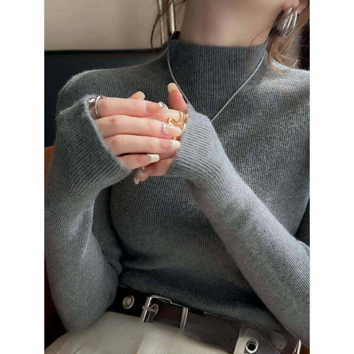 春季内搭打底衫女2025新款灰色半高领毛衣修身针织上衣0102z