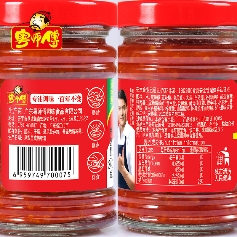 粤师傅壹号桂林辣椒酱240g牛杂拌面下饭酱家庭火锅炒菜手抓饼包邮