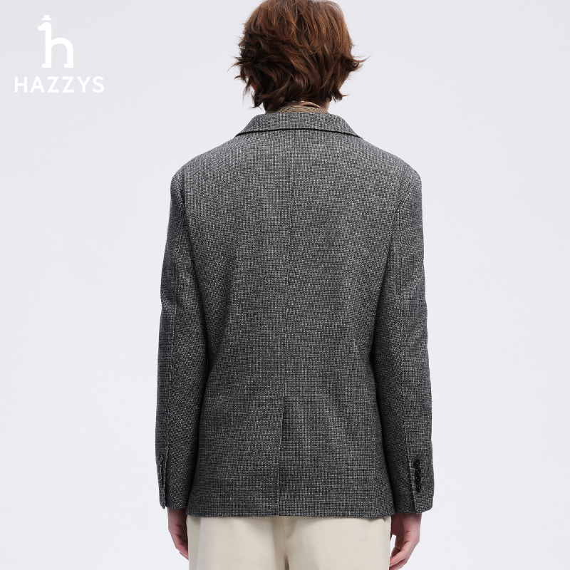 Hazzys哈吉斯男士春秋季时尚潮流千鸟格纹单西外套休闲上衣