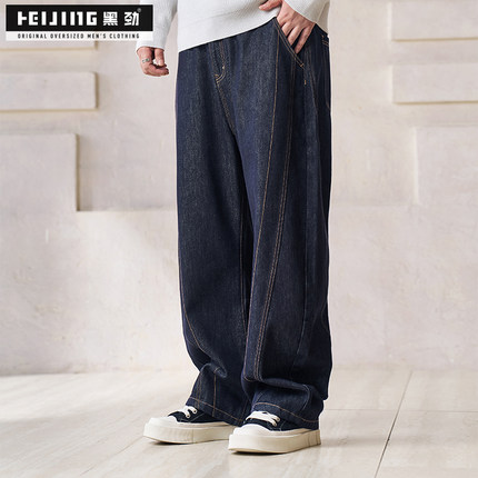 黑劲大码男装水洗原色牛仔裤肥佬加肥加大春季新款宽松休闲弯刀裤