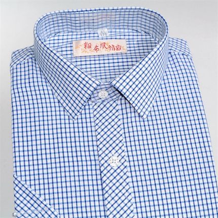夏季新款纯棉手工老粗布男士短袖衬衣中老年男式上衣格子条纹衬衫