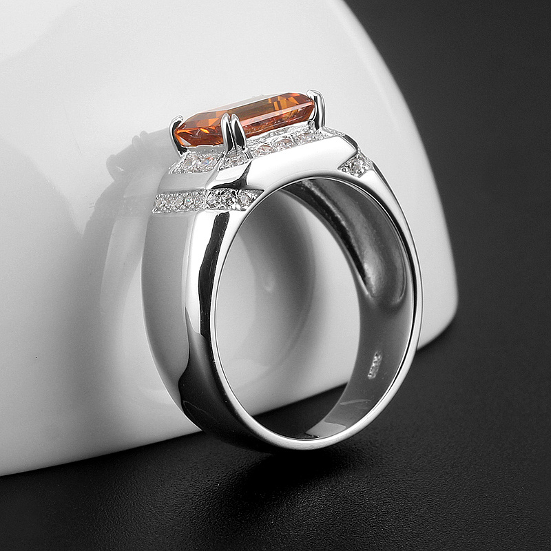 天然黄水晶纯银镀金宝石男士戒指