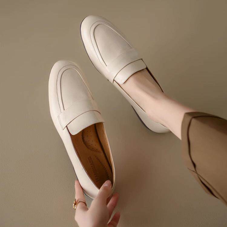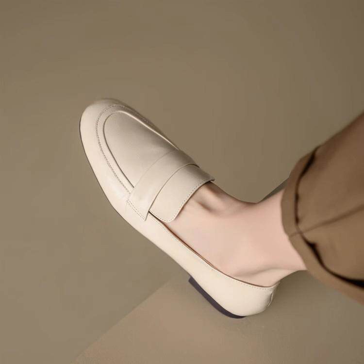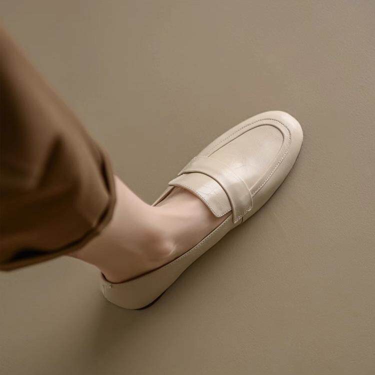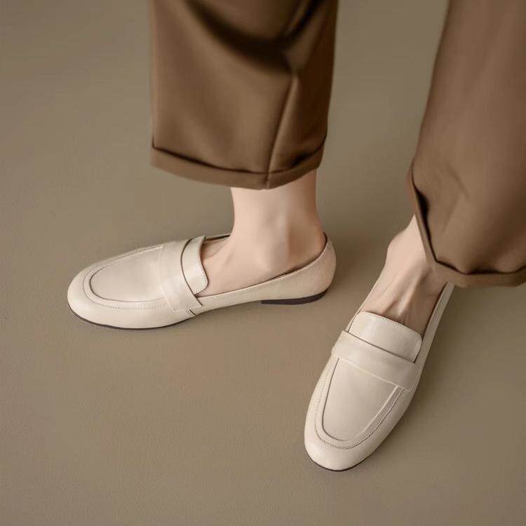 原创真皮乐福鞋女平底2025春季新款英伦一脚蹬软底豆豆鞋圆头单鞋