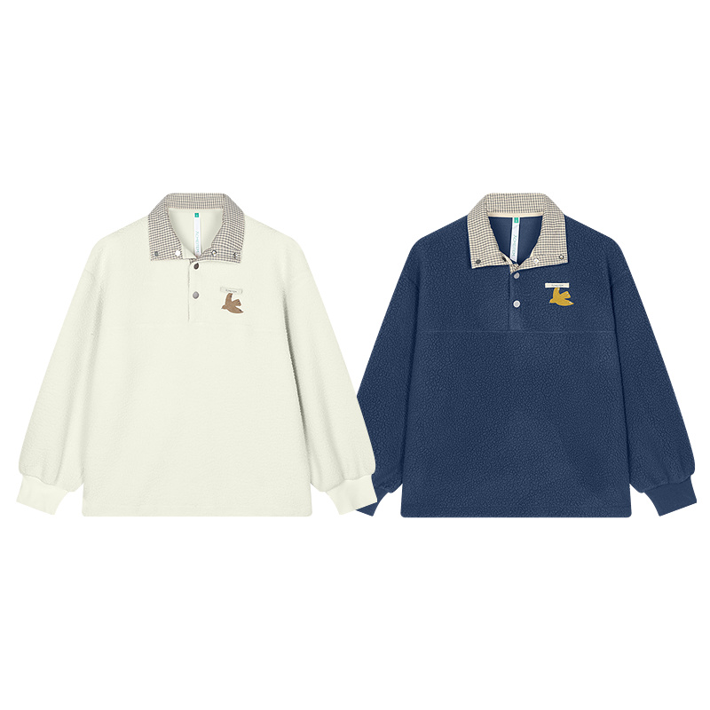 ACMEITEM爱棵米 秋冬仿羊羔毛抓绒刺绣翻领卫衣宽松长袖上衣男女