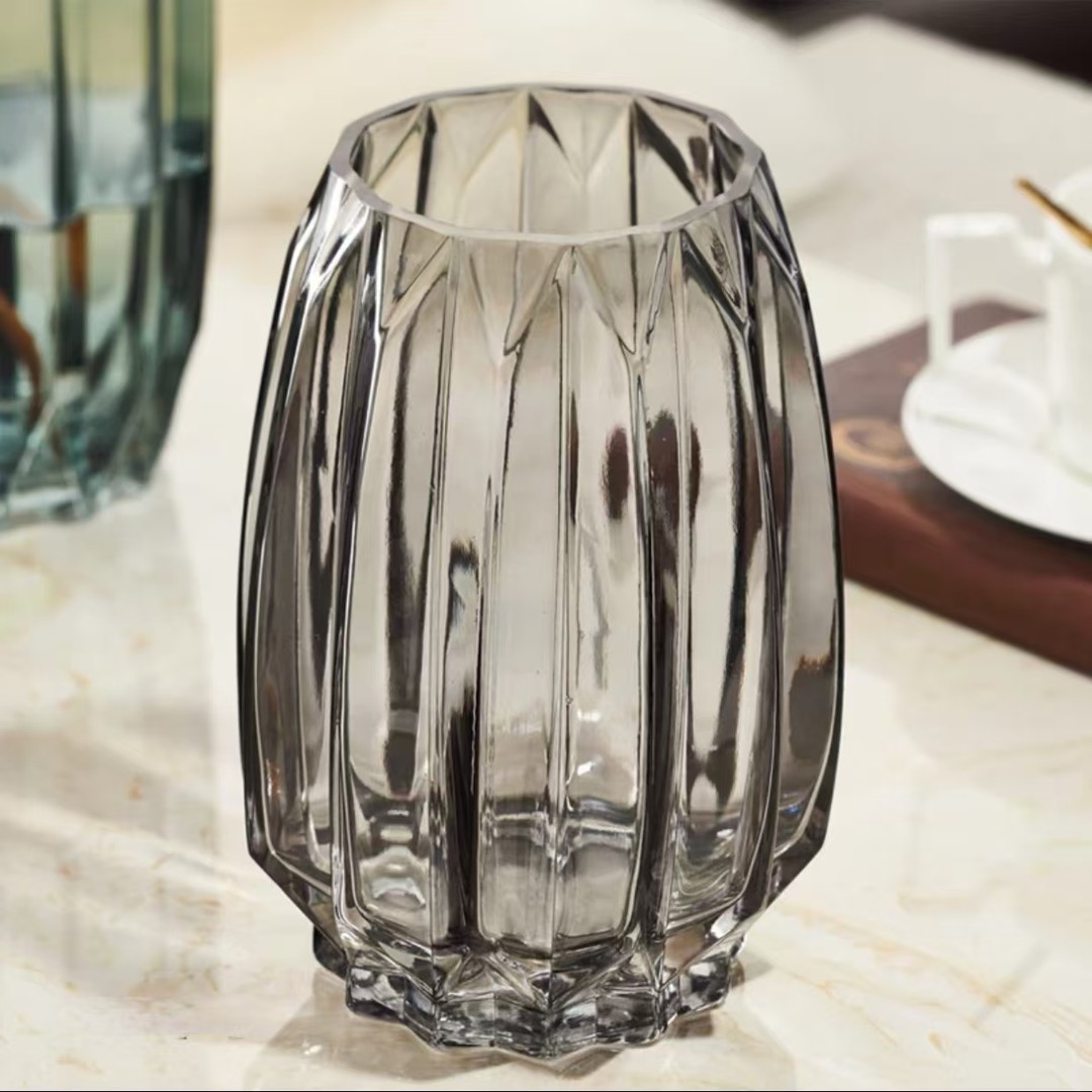 简约竖棱|玻璃花瓶创意彩色透明百合卧室大号水养插花花瓶摆件