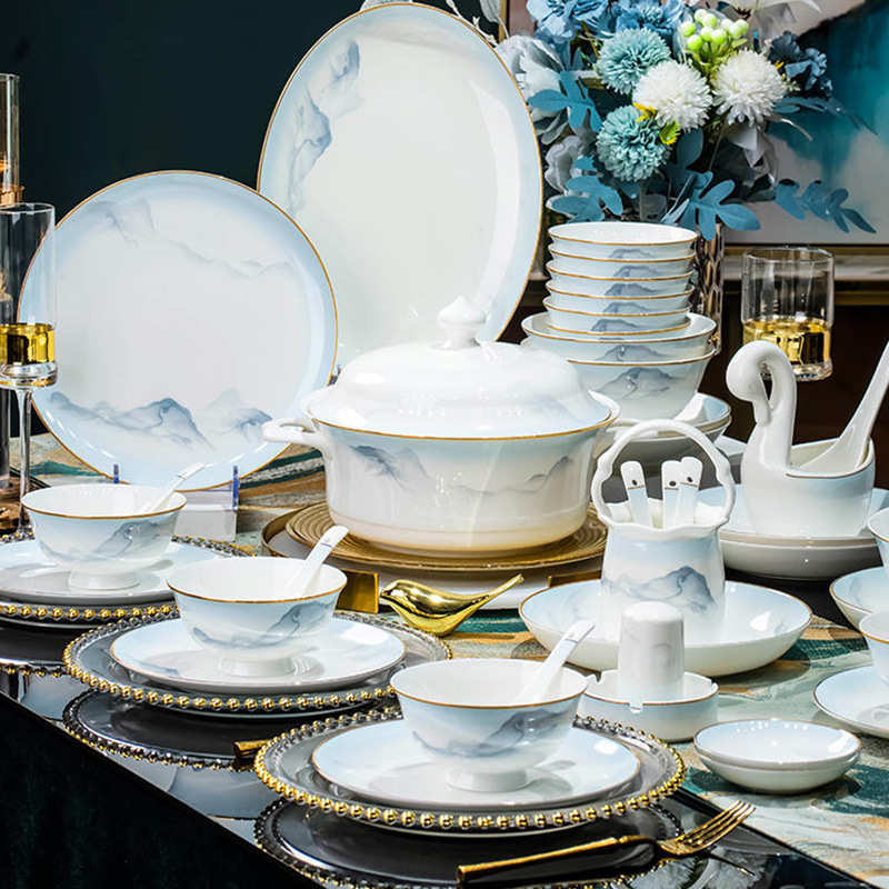 碗家用碗碟套装轻奢简约碗碟套装家用景德镇骨瓷餐具套装乔迁