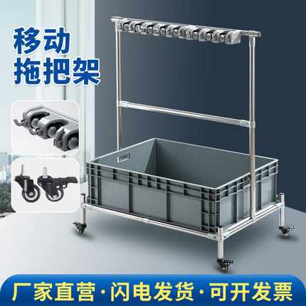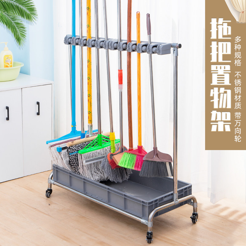 不锈钢拖把架拖把扫把墩布挂架子挂钩可移动学校工厂清洁收纳工具