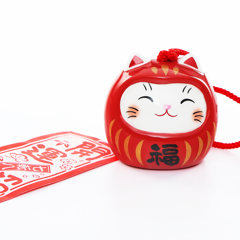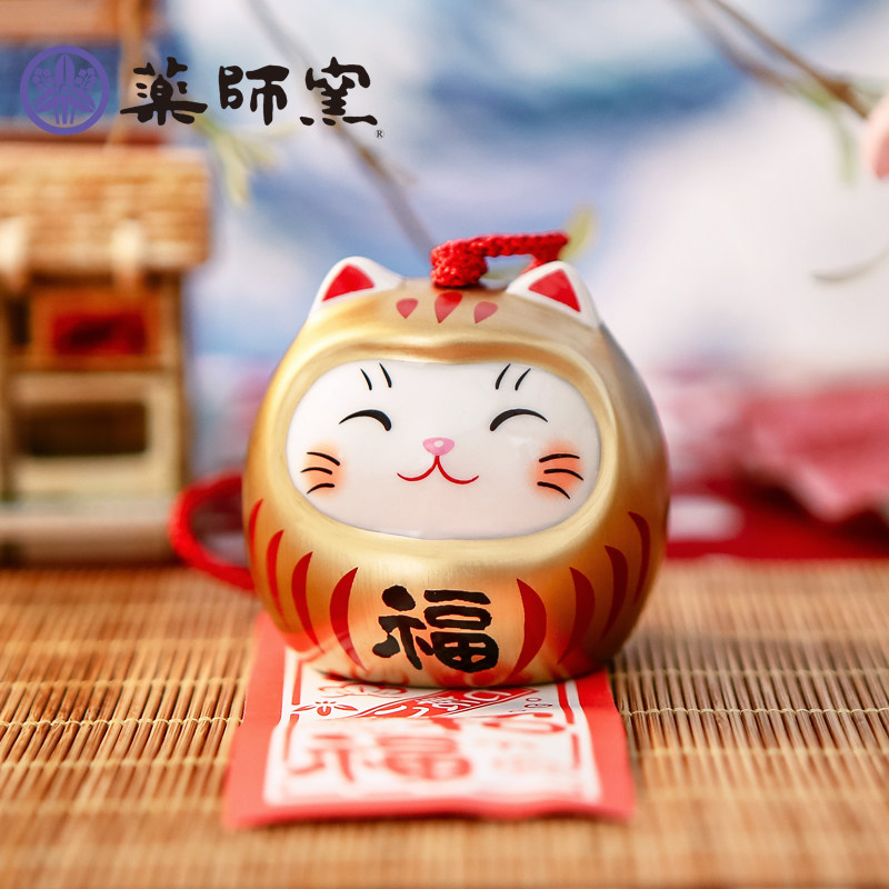 【自营】日本药师窑达摩招财猫风铃陶瓷摆件挂饰阳台挂件车载日式