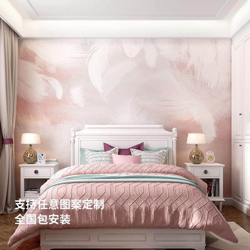 环保无缝墙布简约现代羽毛客厅卧室壁布婚房电视背景墙定制壁画