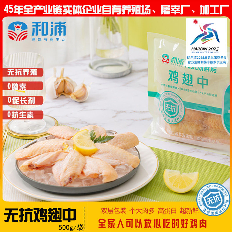 和浦鸡翅中500g每袋生鲜无抗养殖0激素0抗生素好鸡肉好品质放心吃