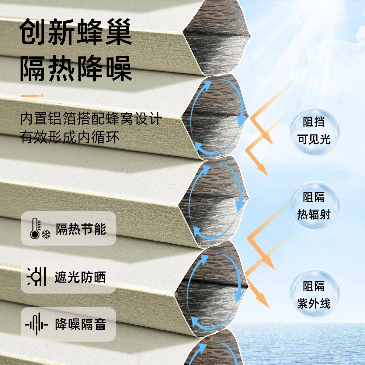 无绳蜂巢帘免打孔卫生间防水全遮光厨房遮阳窗户遮挡蜂窝百叶窗帘