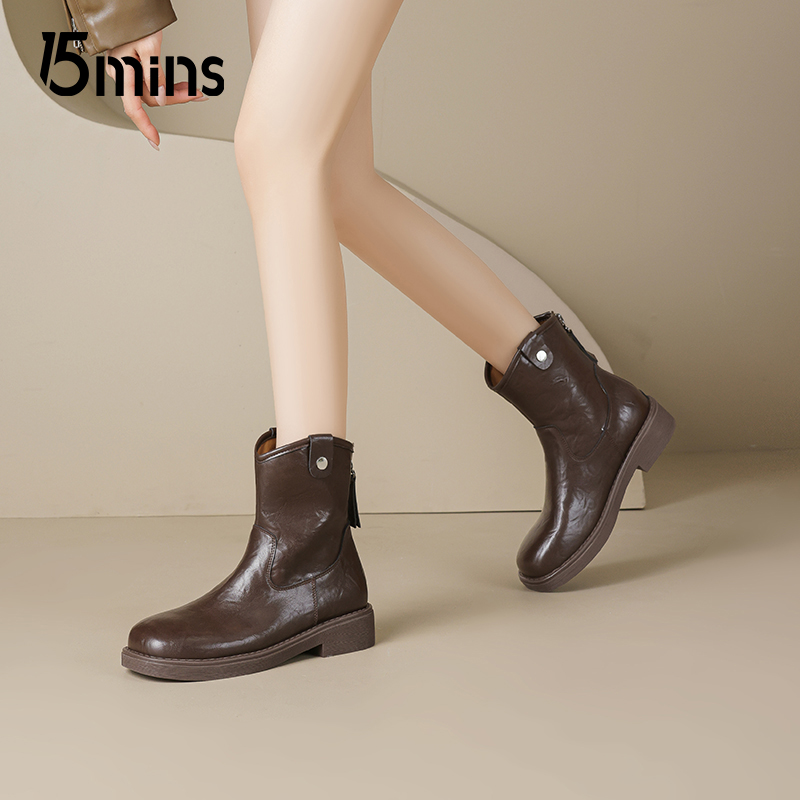 15mins英伦风马丁靴女2025新款秋季复古棕色切尔西短靴百搭瘦瘦靴