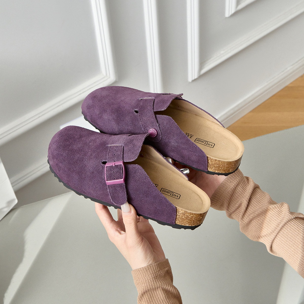 勃肯鞋女半拖厚底真皮拖鞋2025夏外穿一脚蹬女鞋软木拖鞋牛皮