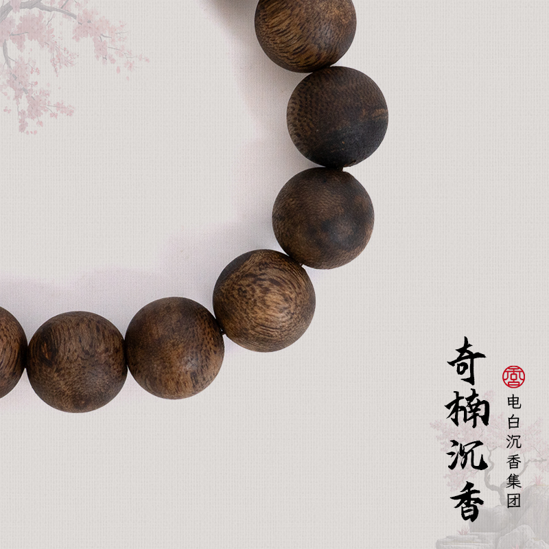 【电白沉香集团】奇楠沉香圆珠单圈手串15mm