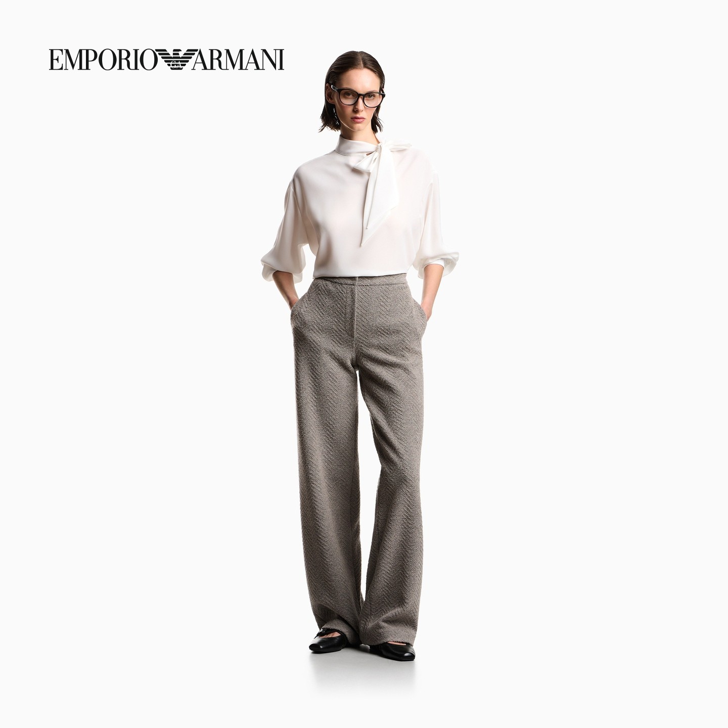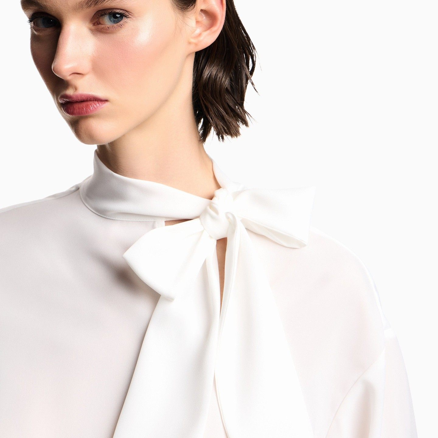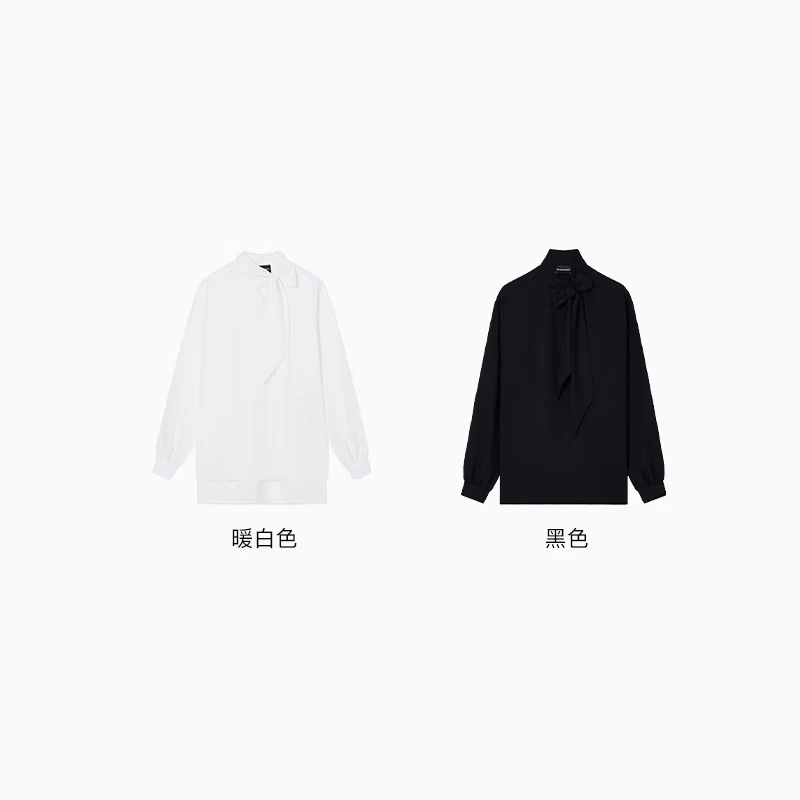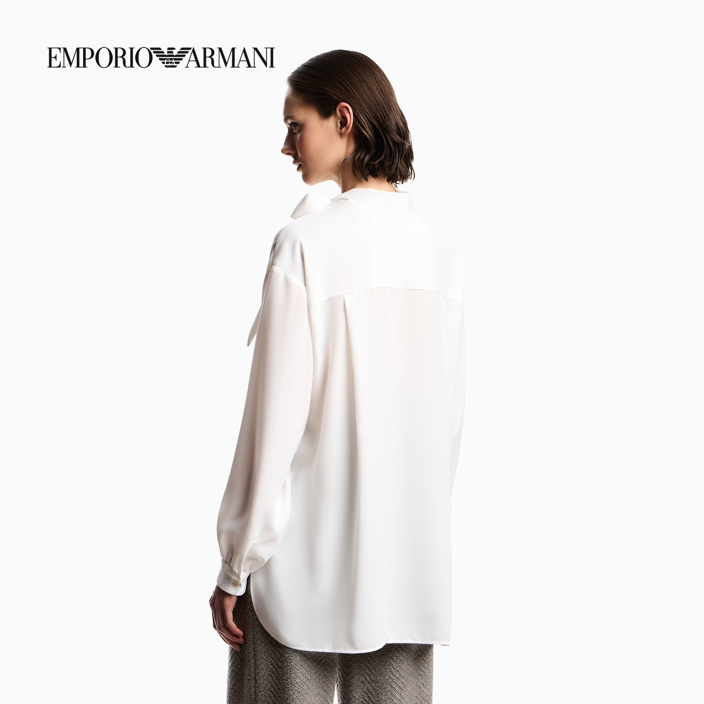 EMPORIO ARMANI/阿玛尼秋冬新款女士围巾领轻奢长袖绉纱衬衫官方