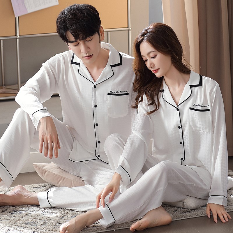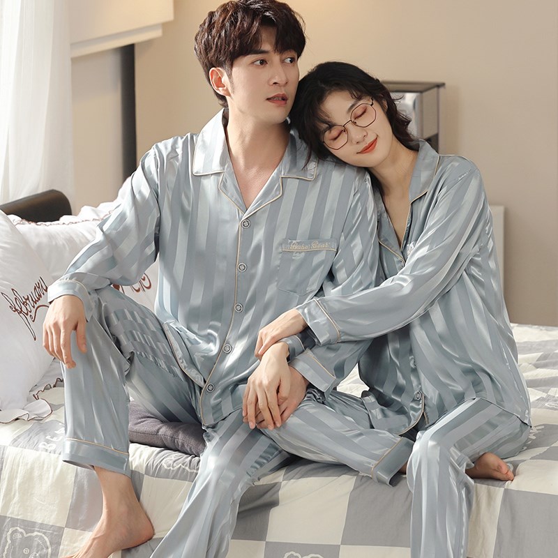 现货速发2套价 情侣睡衣长袖春款家居服韩版宽松男士丝绸夏套装