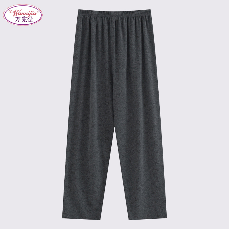 万霓佳纯棉磨毛男士睡裤春秋加厚保暖格子中年加肥加大宽松家居裤