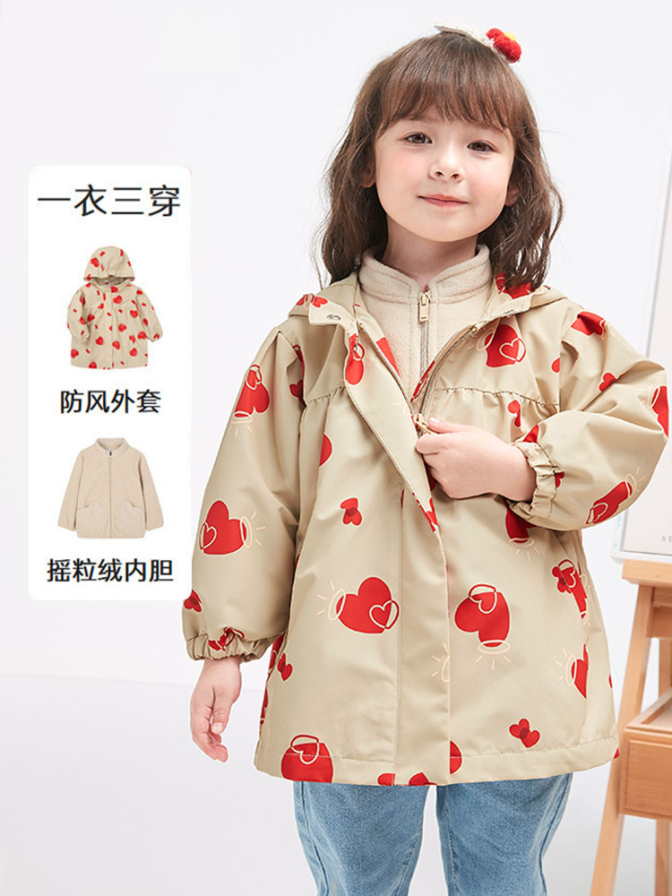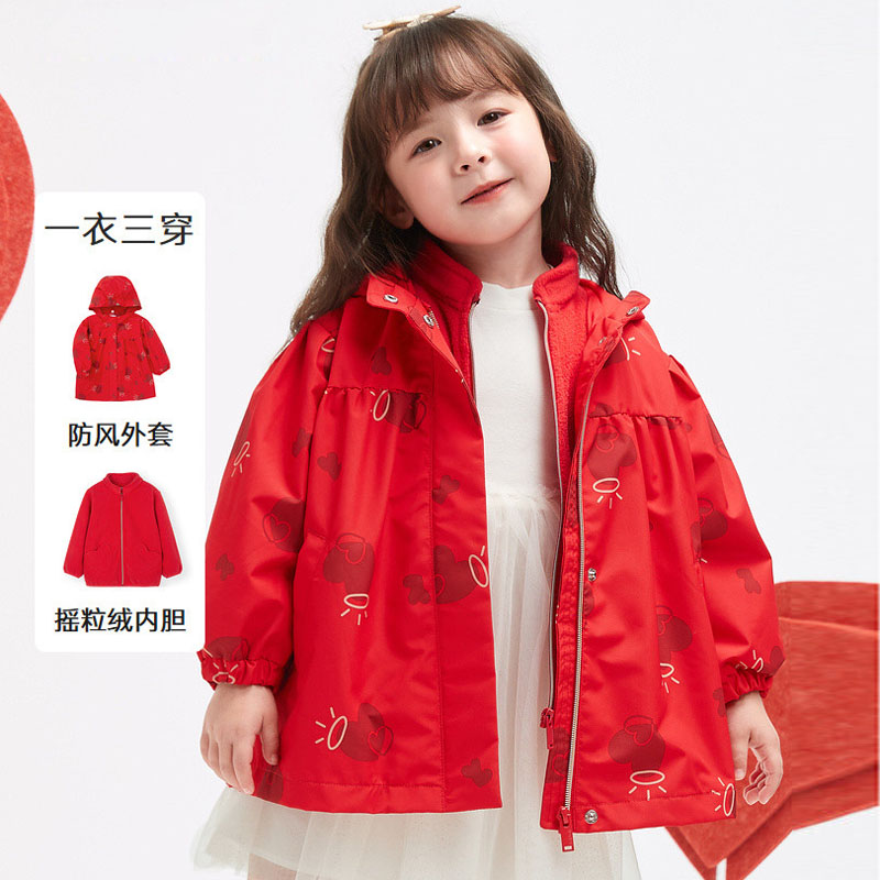 正品清仓女童三合一冲锋衣幼小童摇粒绒外套宝宝拜年服两件套