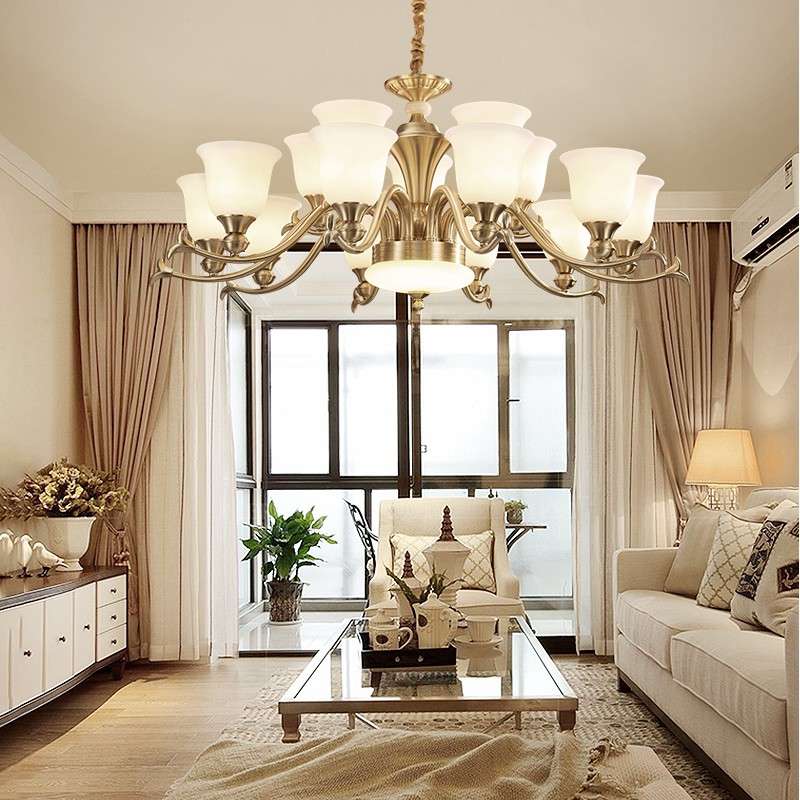 美式吊灯客厅灯全铜现代简约餐厅灯饰简欧卧室灯欧式全铜灯具套餐
