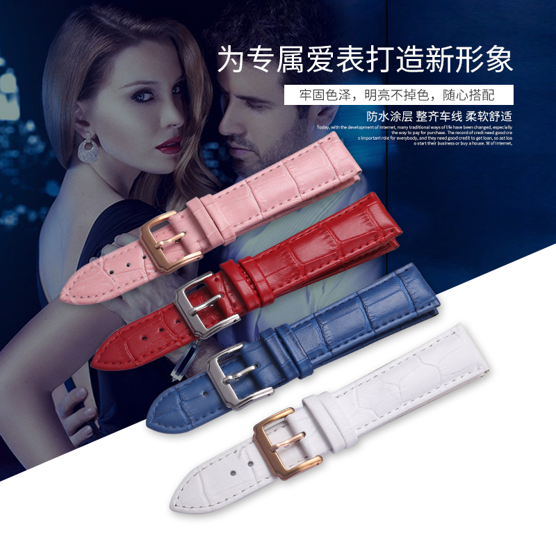 真皮手表带男女针扣小牛皮手表链蝴蝶扣表带代用天梭浪琴卡西欧DW