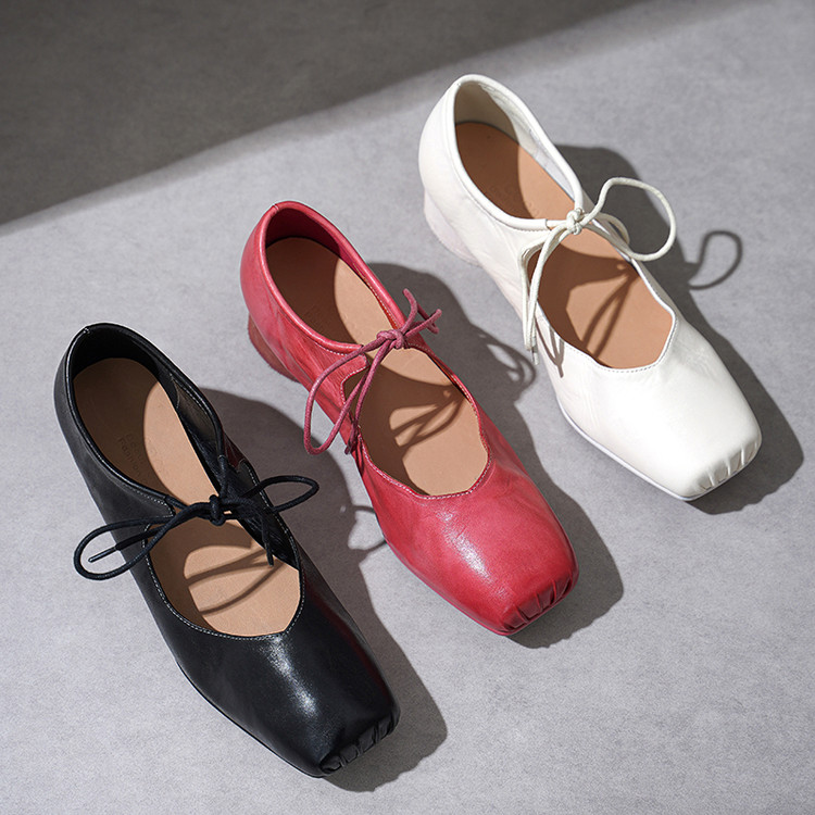 水洗马皮粗跟T字带蝴蝶结玛丽珍鞋不累脚舒适中跟复古单鞋文艺