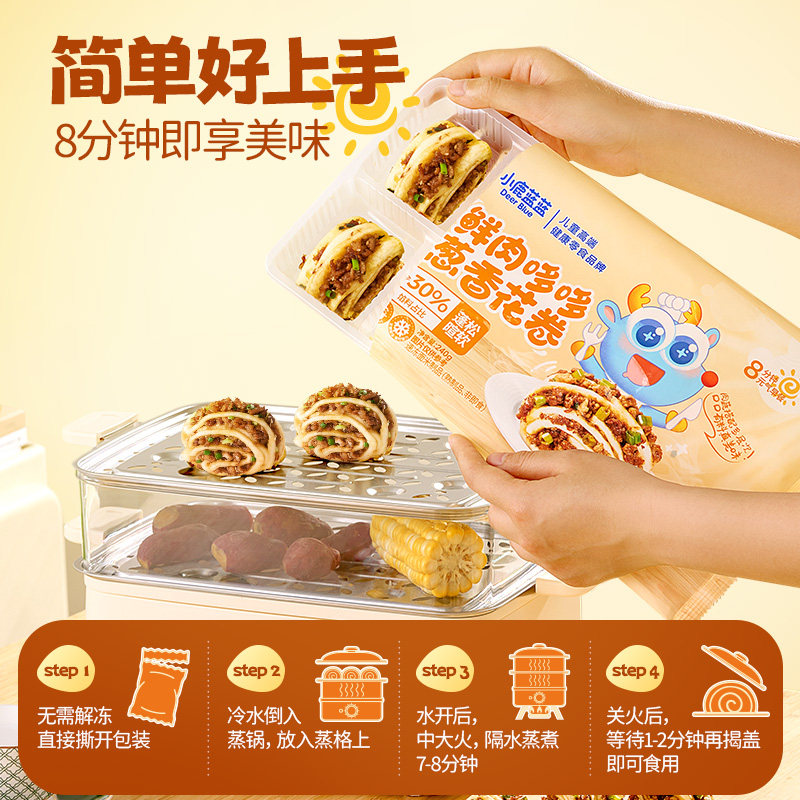 小鹿蓝蓝鲜肉葱香花卷包子馒头儿童营养早餐半成品送婴幼儿辅食谱