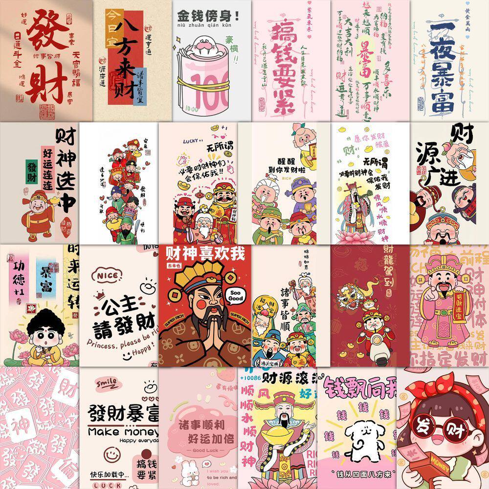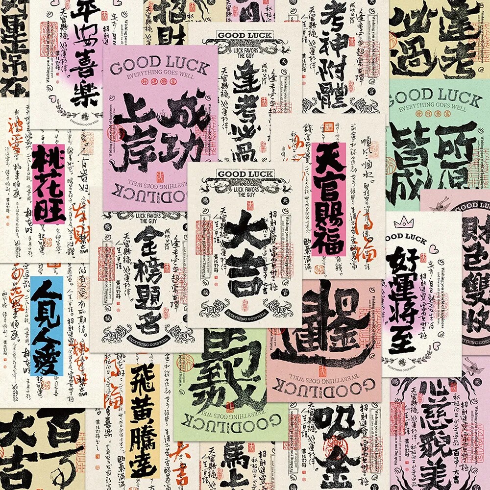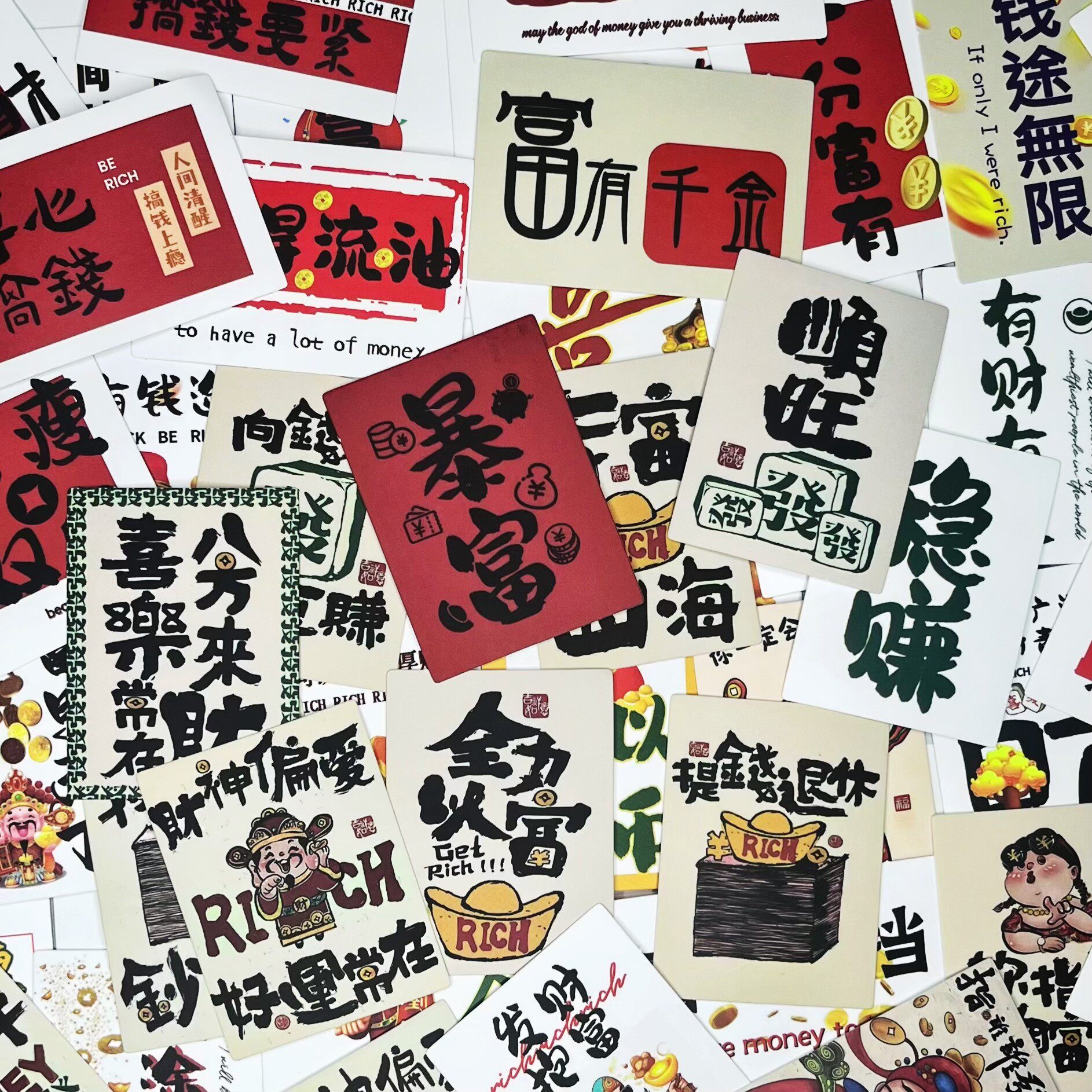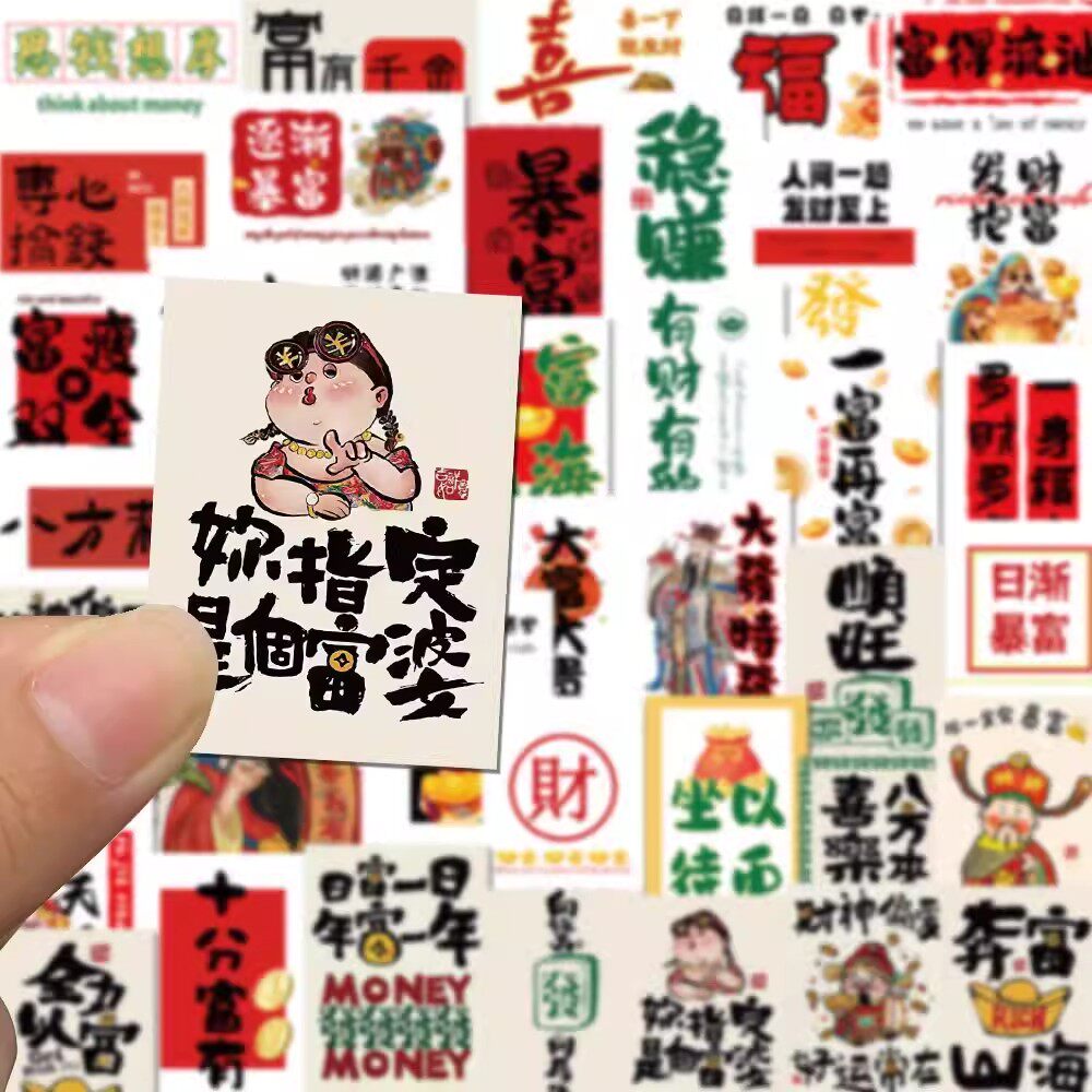 50张新款暴富文字贴纸创意励志有钱笔墨ins风个性装饰diy标签贴画