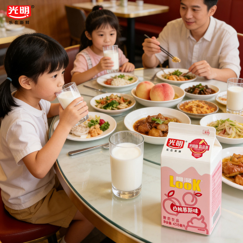 光明Look噜渴酸奶200/458ml白桃慕斯味益生菌酸牛奶餐饮冷藏饮品