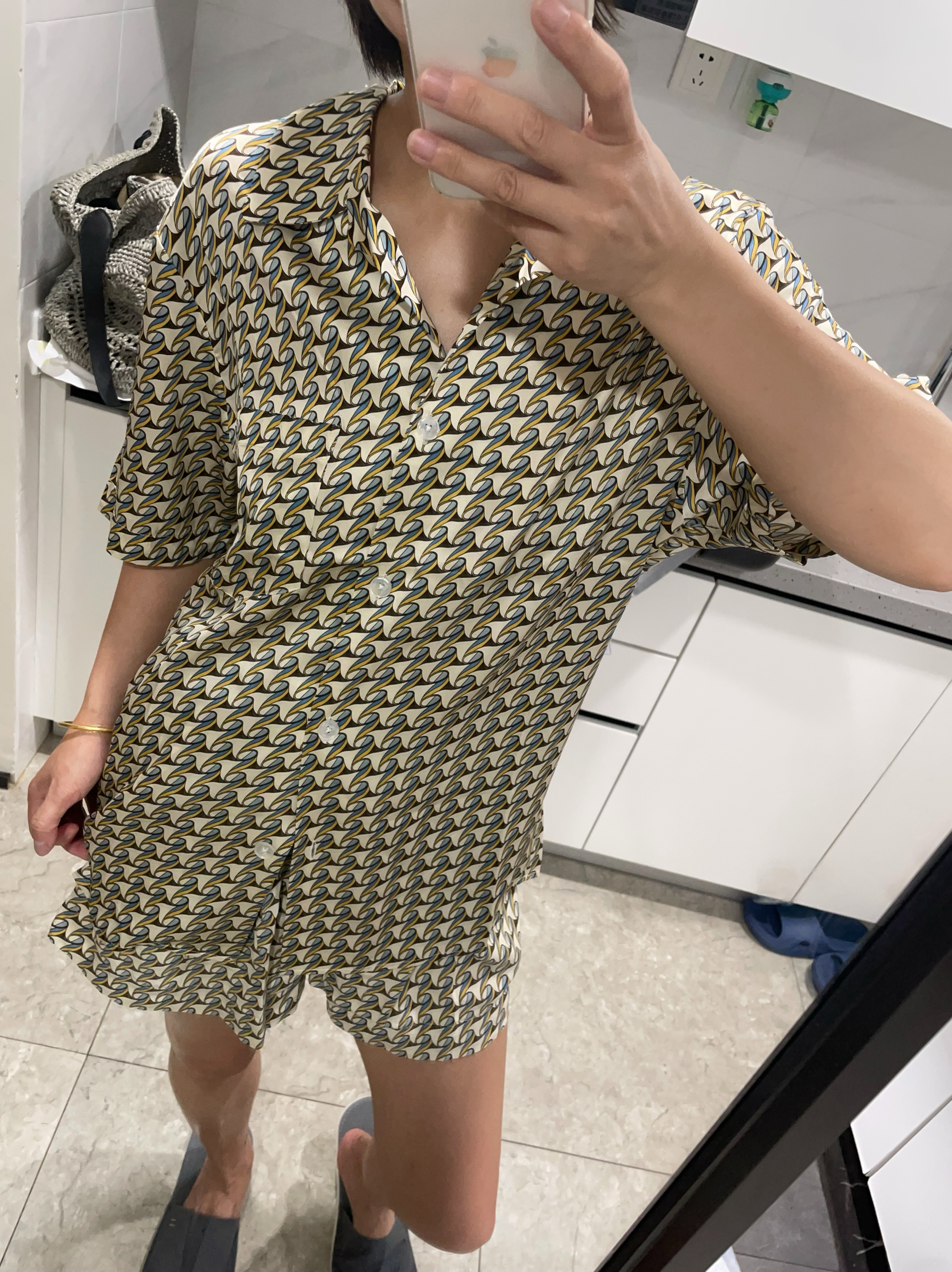 桑蚕丝真丝几何图形睡衣居家服套装短袖短裤