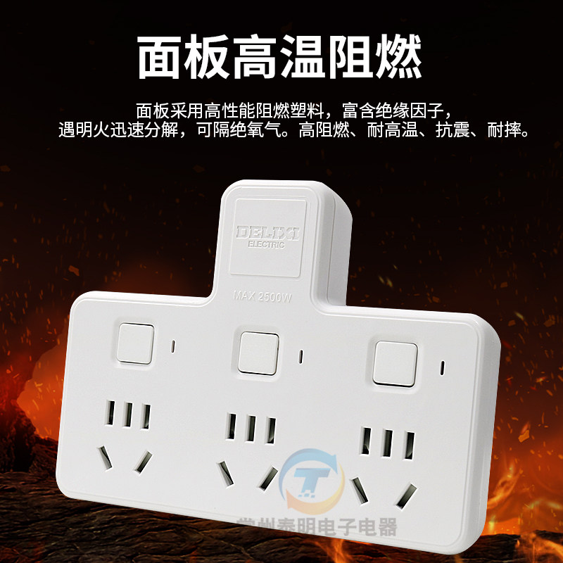 德力西插座转换器一转二三多功能分插头面板多孔插板家用无线排插