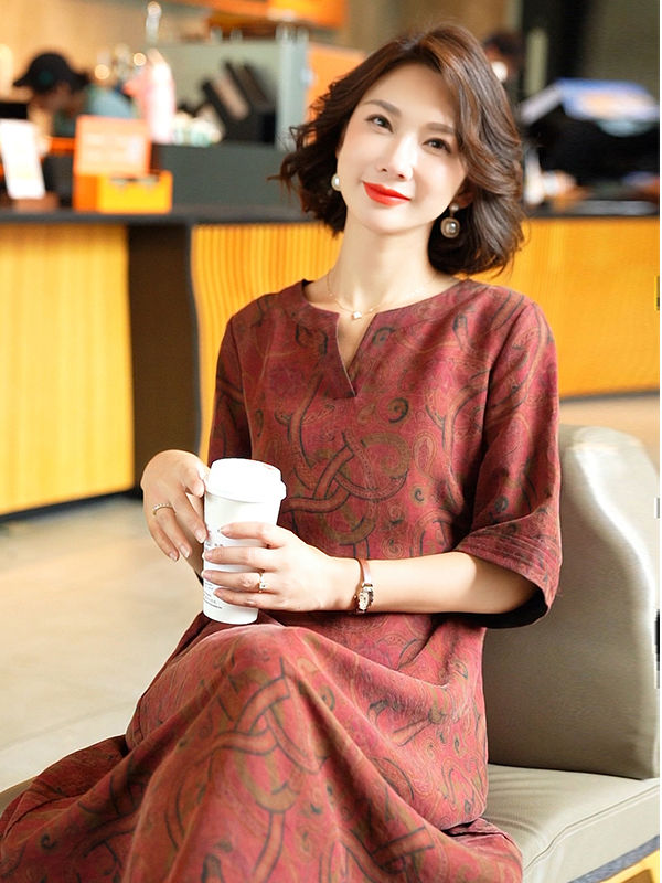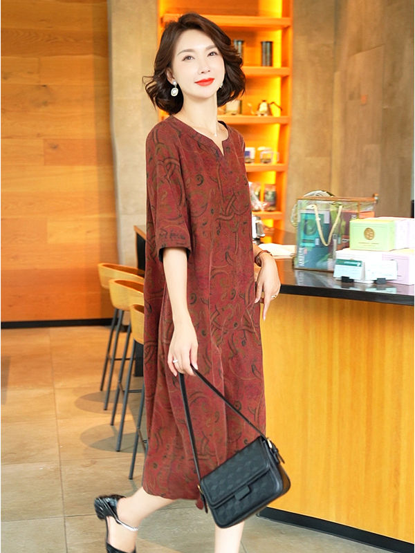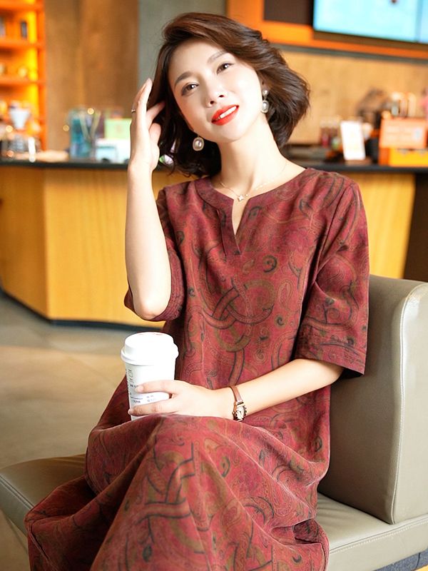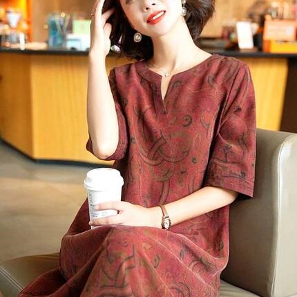香云纱桑蚕丝连衣裙2025夏新款中老年宽松杭州丝绸气质长款妈妈裙