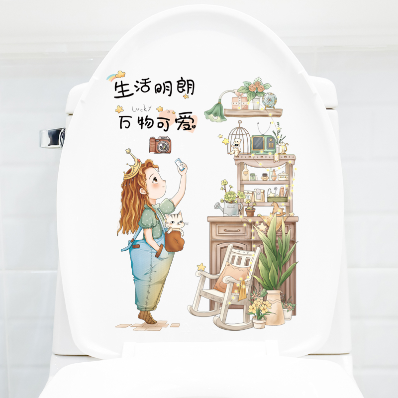 可爱卡通趣味马桶贴纸马桶盖装饰贴画浴室卫生间瓷砖寝室宿舍防水