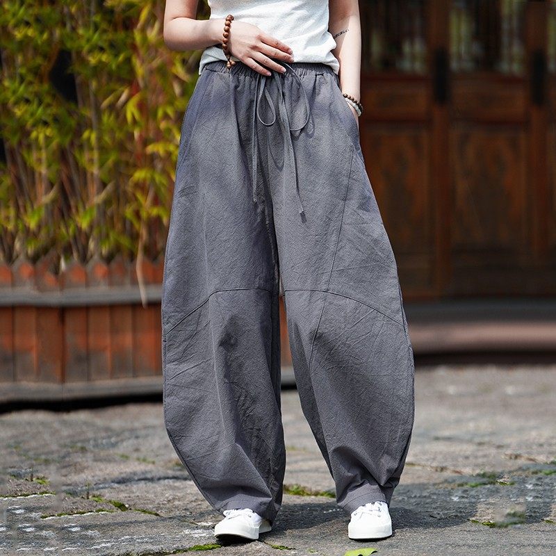 黑武士山本风棉麻弯刀裤子男夏季薄款阔腿灯笼裤直筒斜切镰刀长裤