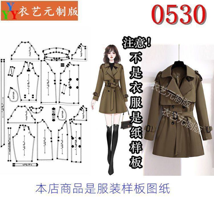 0530衣服装裁剪图纸样板新款版手工女士风衣短款外套小个子女装