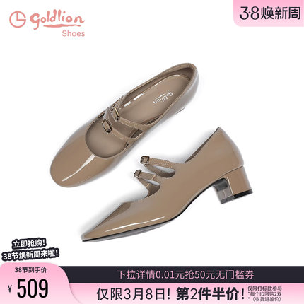 金利来女鞋商场同款春秋漆皮浅口粗跟皮鞋百搭圆头双扣玛丽珍鞋女