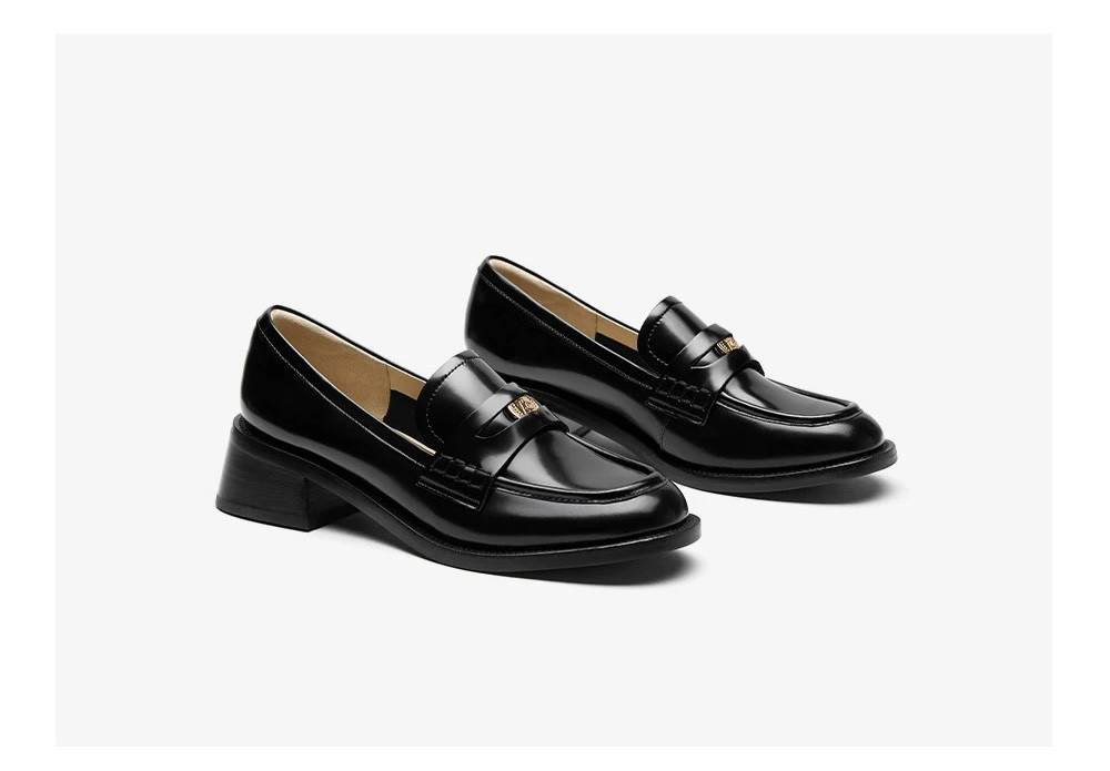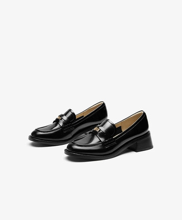 商场同款女鞋风笛乐章2025春季新款金币乐福鞋中跟小皮鞋单鞋女